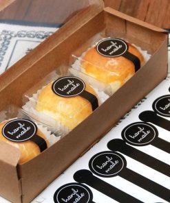 - Chọn kích thước tem nhãn phù hợp với hình dạng và kích thước hộp giấy bánh kẹo. Không quá lớn hay quá nhỏ, không che khuất hay lệch lạc so với sản phẩm.