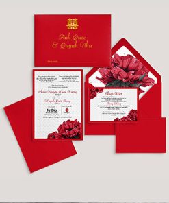 In thiệp mời cưới: Thiệp mời cưới thường được in trên giấy cao cấp và có nhiều kiểu dáng, màu sắc khác nhau. Thiệp mời cưới thường có thông tin về ngày, giờ và địa điểm tổ chức đám cưới, cùng với lời mời đến khách mời.