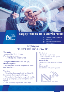 -Kinh nghiệm / Kỹ năng chi tiết – Có ít nhất 2 – 3 năm kinh nghiệm trong lĩnh vực thiết kế bao bì hoặc thiết kế đồ họa